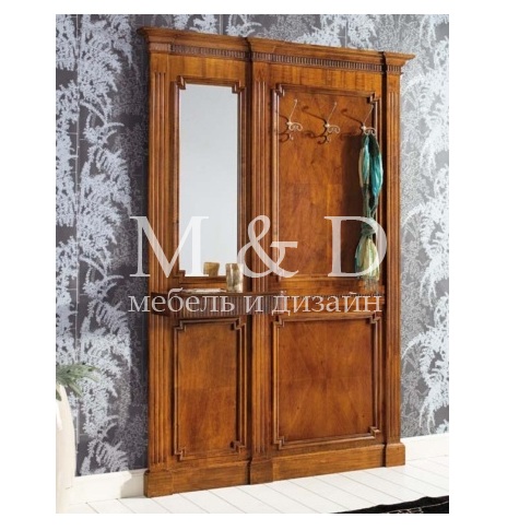 Прихожая Mantegna Art. 7004 Размеры: L 148 х P 30 х H 215 cm. Материалы: массив древесины, натуральный шпон. Отделка на фото: состаренная вишня.